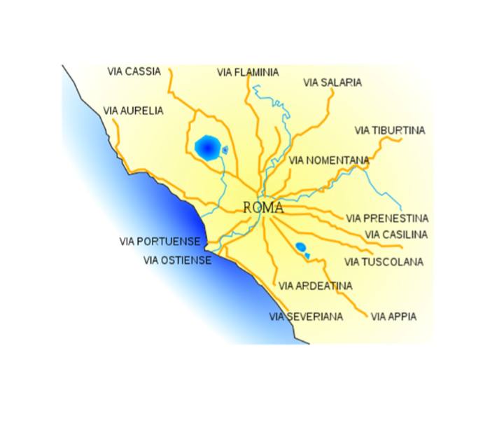 Origem: Durante séculos, o Império Romano construiu milhares de quilómetros de estradas, desde a Grã-Bretanha à Turquia, do rio Danúbio ao Norte de África. Tal feito terá levado ao popular ditado sobre a capital italiana. A grande extensão da cobertura oferecida pelas estradas romanas deu origem ao ditado popular que diz que "todas as estradas/caminhos vão dar a Roma" .