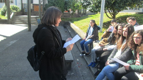 Os alunos do 7º ano da turma B participaram nesta maratona da leitura e, sem pausas nem hesitações, leram em voz alta, ao longo de uma hora, o conto "Avó e neto contra vento e areia", de Teolinda Gersão. Após esta leitura, comentaram o que ouviram num debate muito participado. No final, houve um tempo para degustar uma chícara de chá e uns bolinhos carinhosamente oferecidos pela biblioteca.