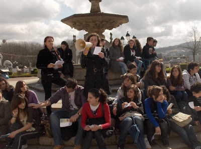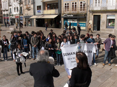No centro da cidade, junto ao Chafariz, os alunos leram poemas.